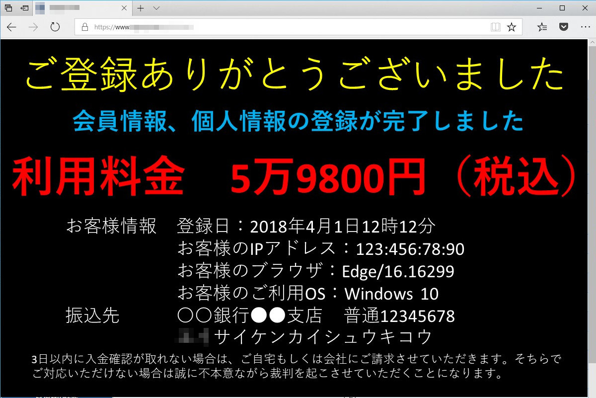 それはワンクリック詐欺ですね。